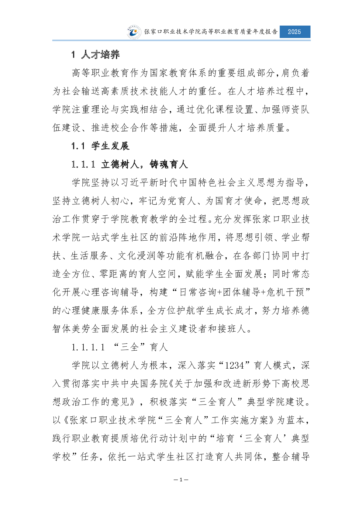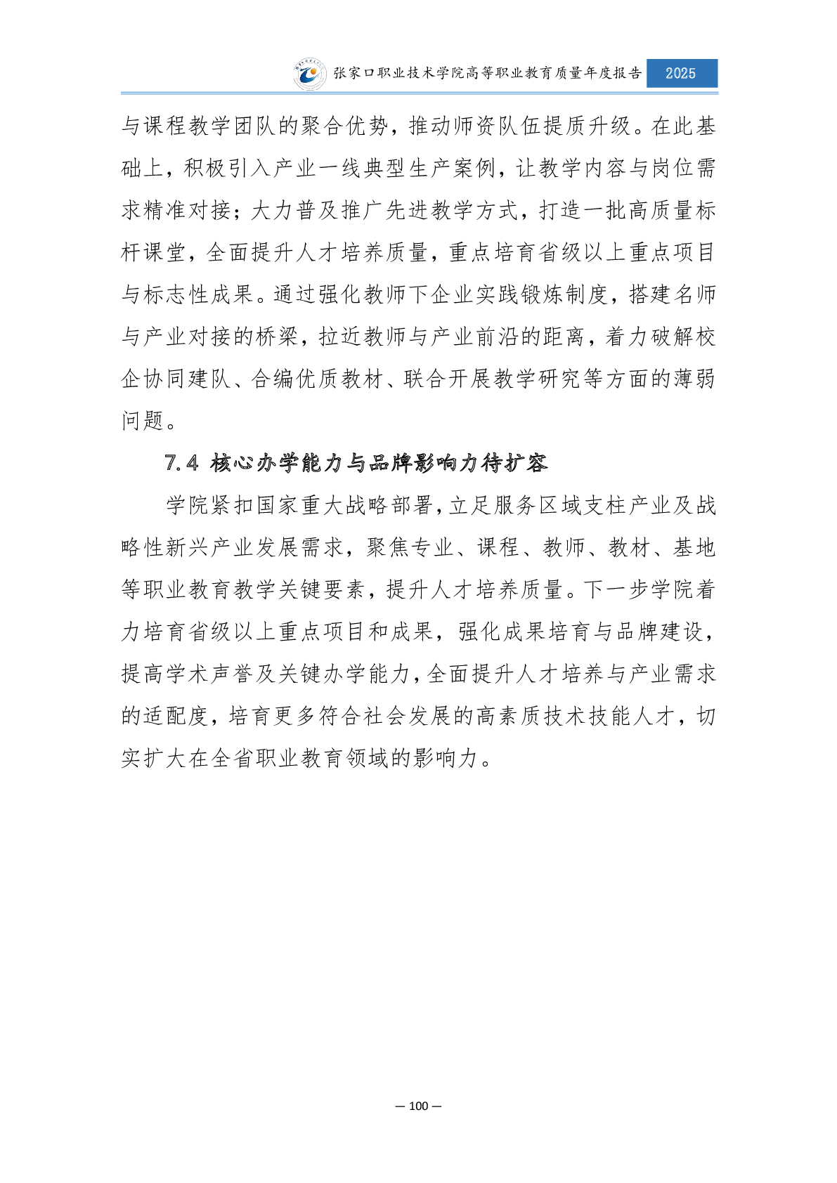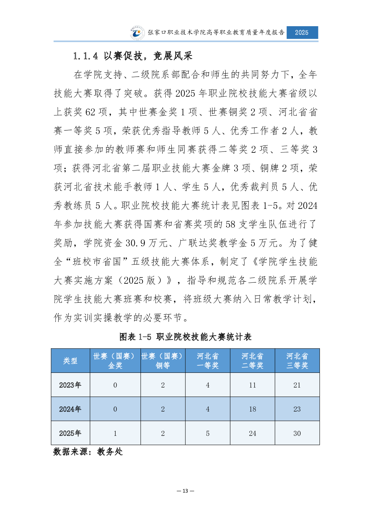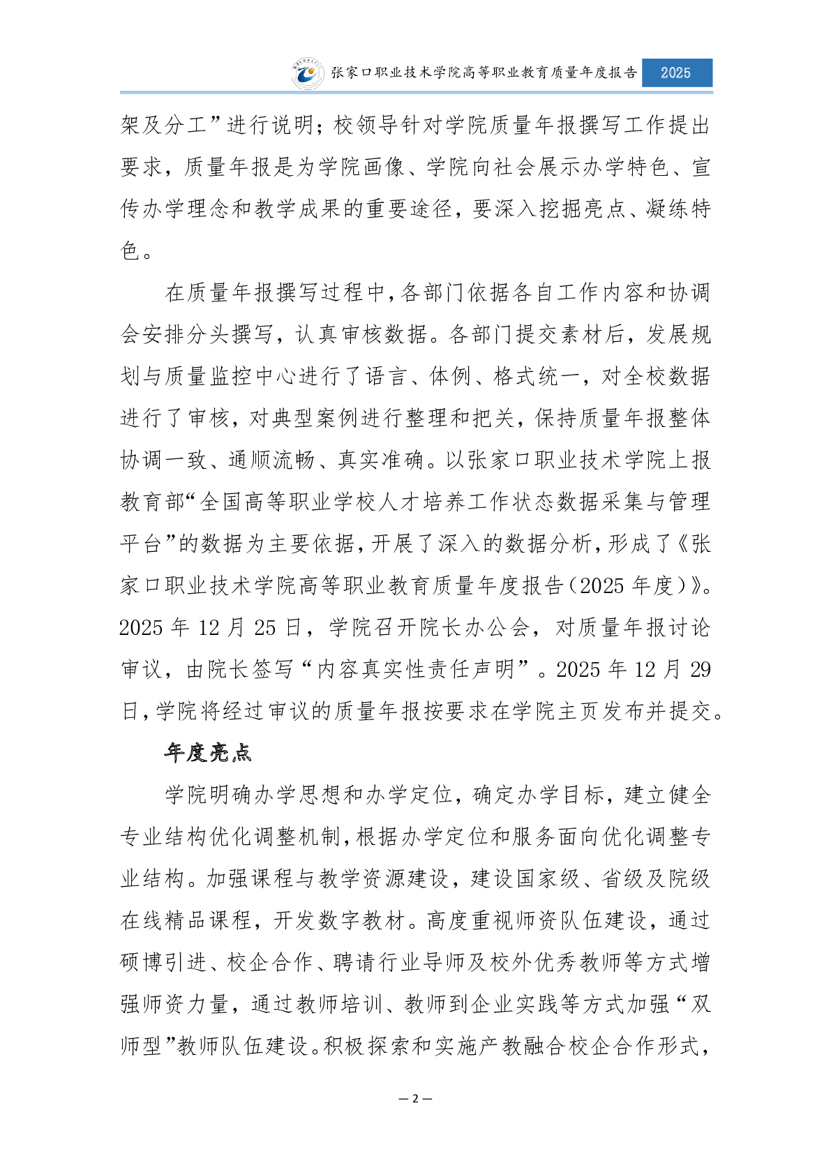 张家口职业技术学院高等职业教育质量年度报告(2025年度)