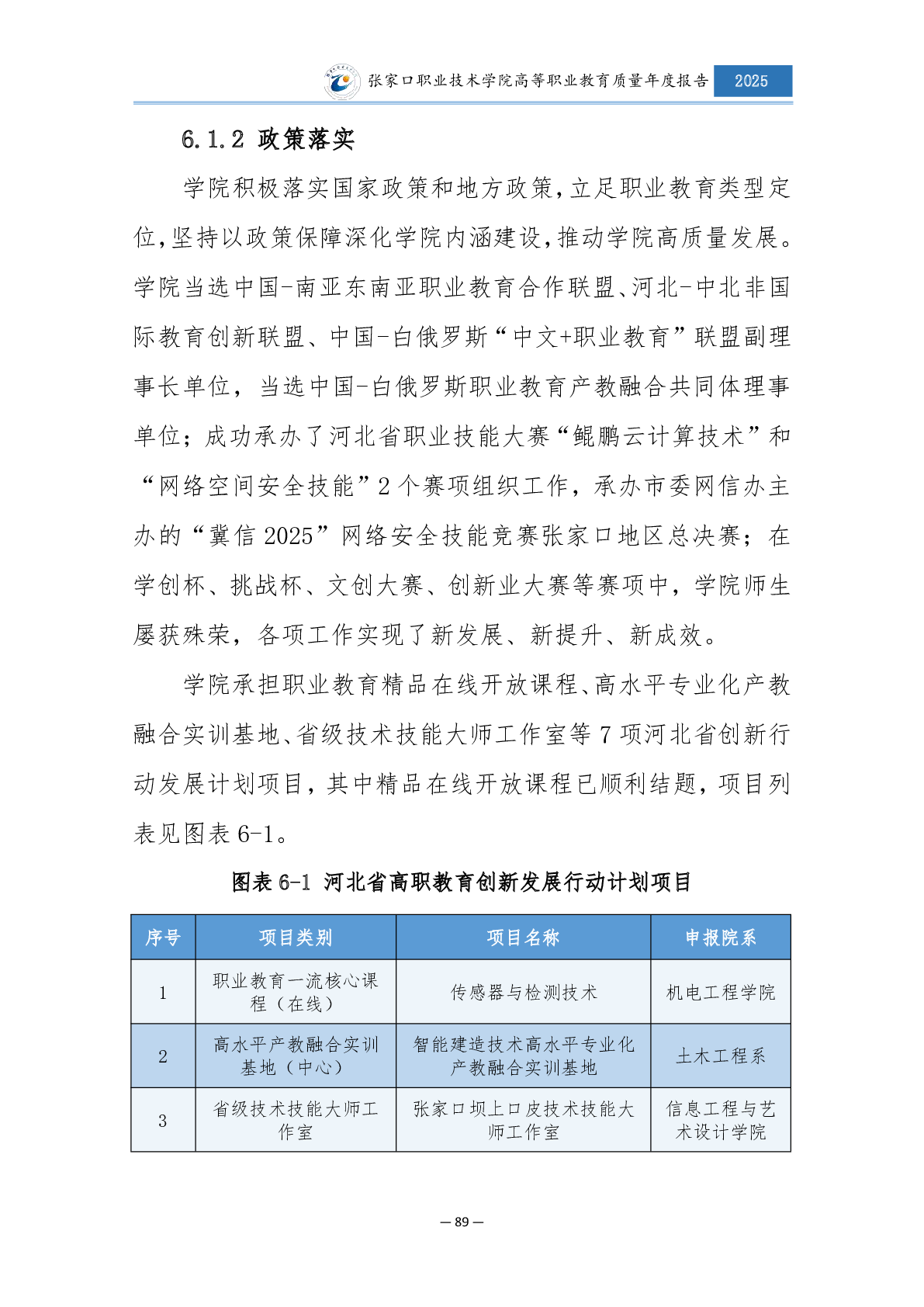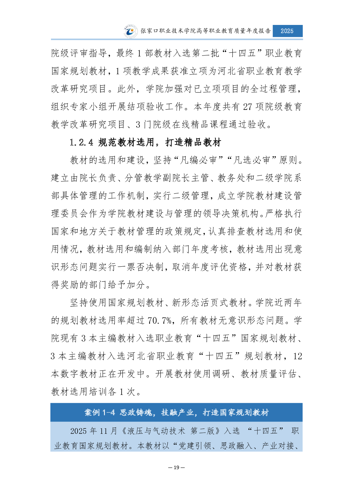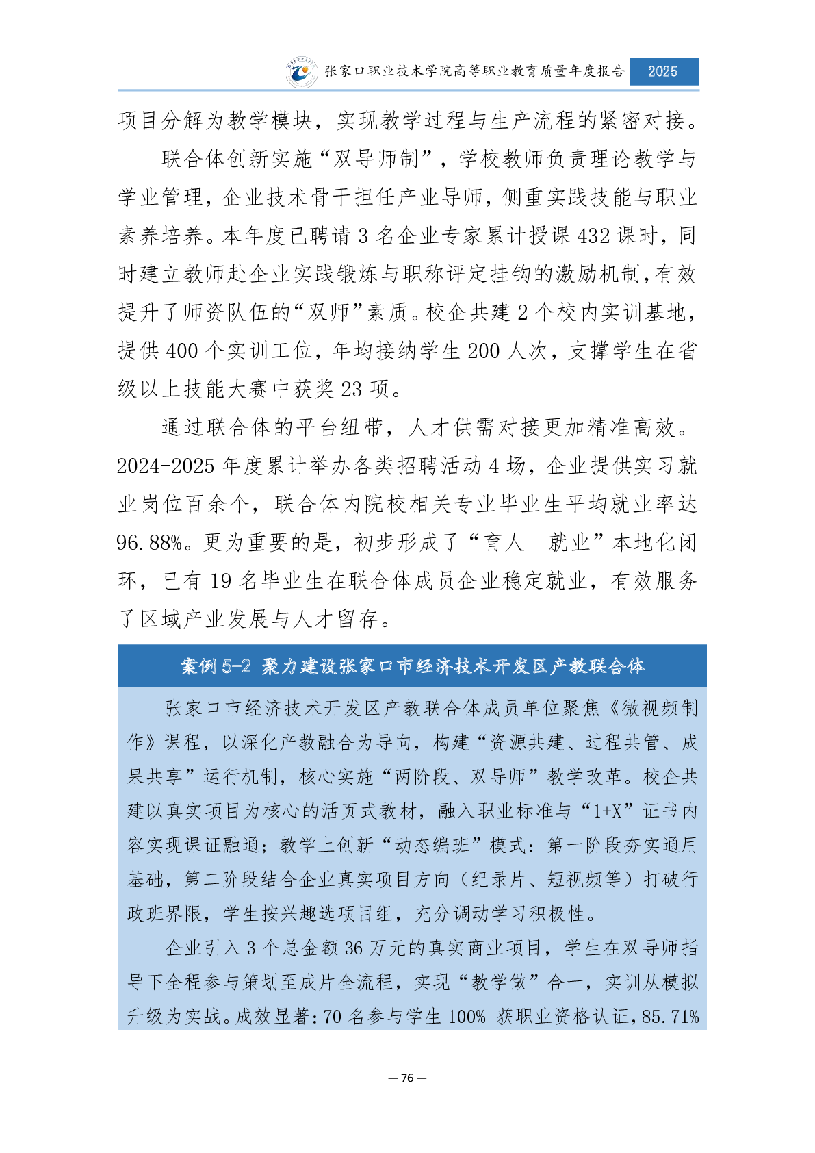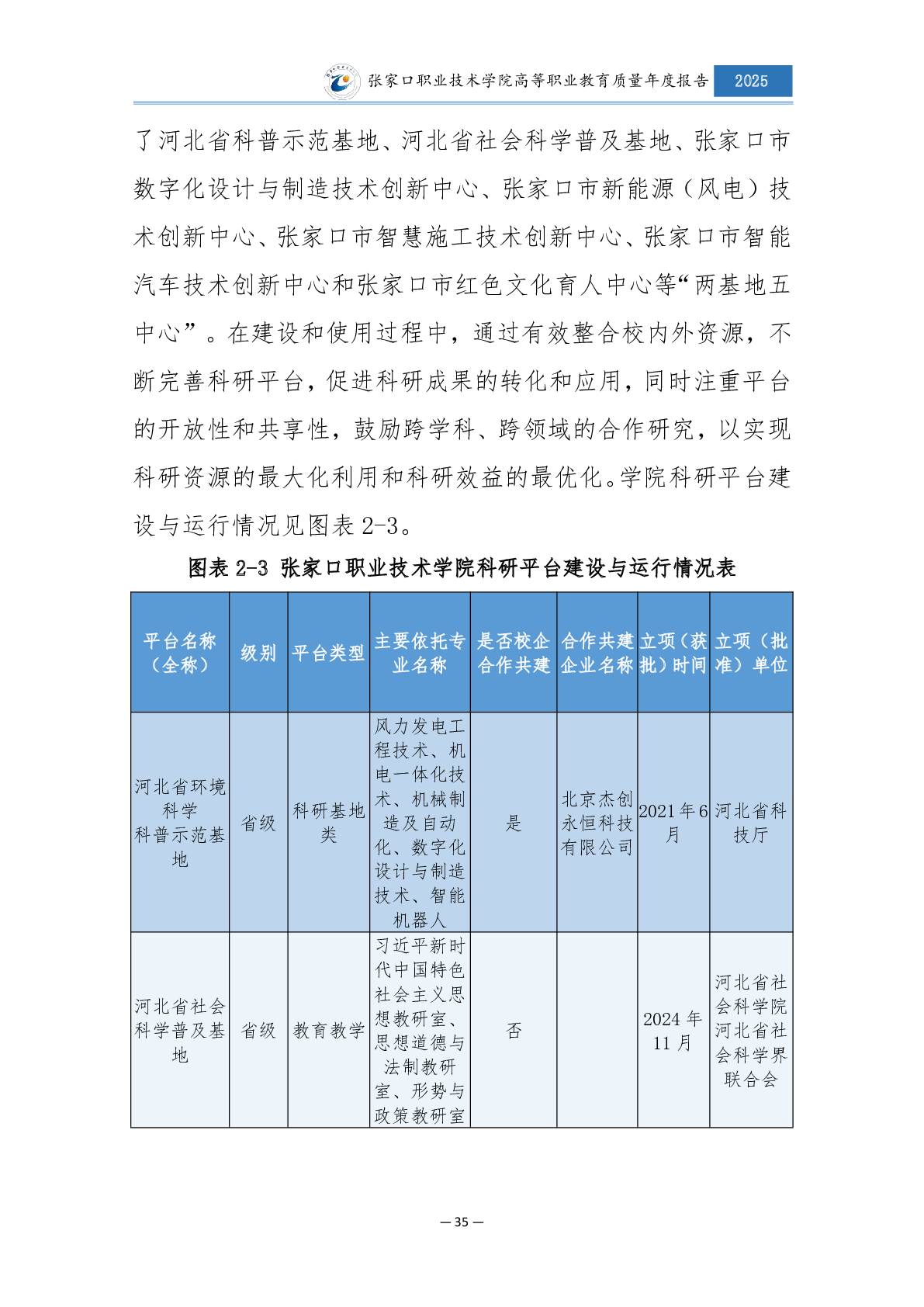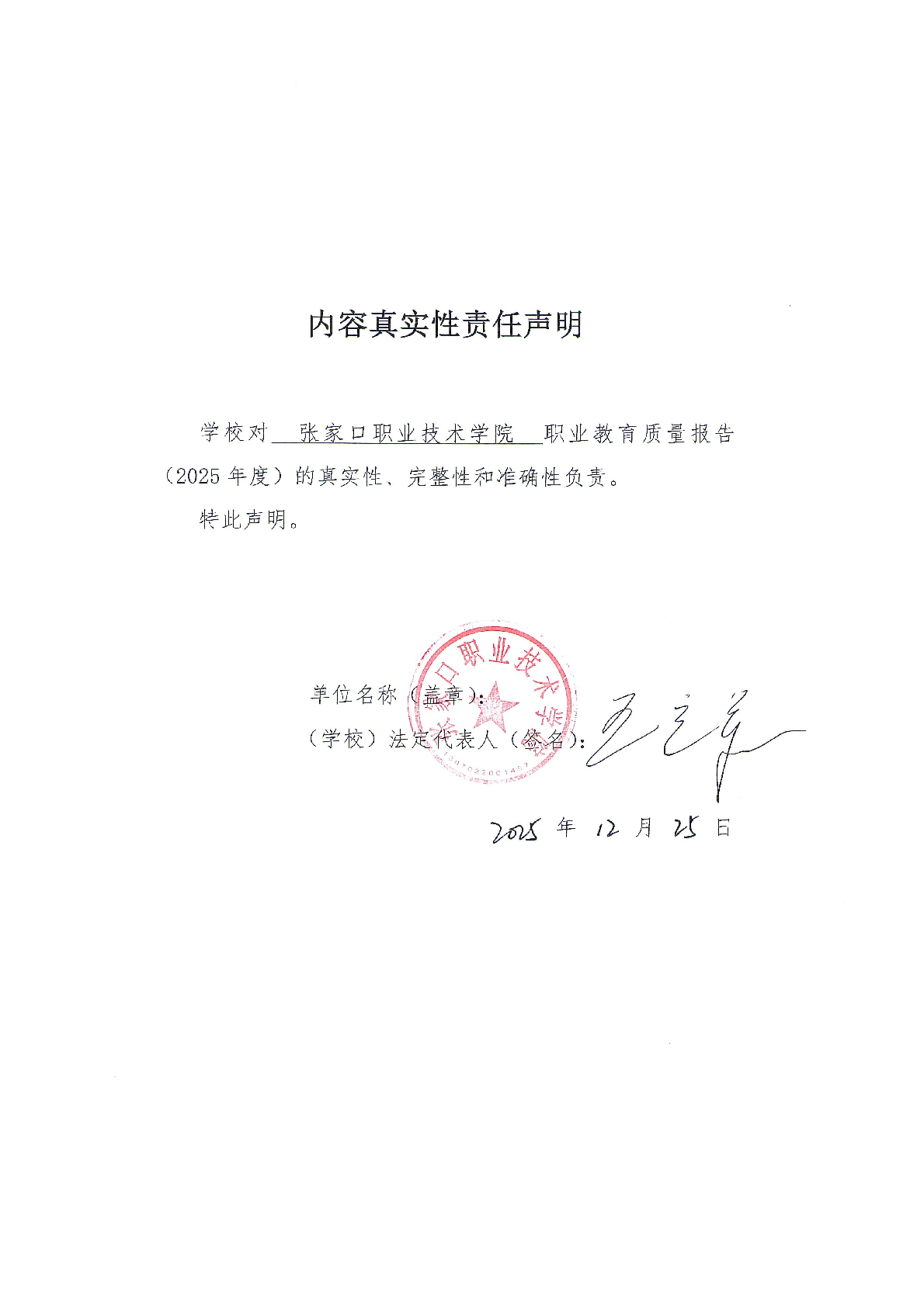 张家口职业技术学院高等职业教育质量年度报告(2025年度)